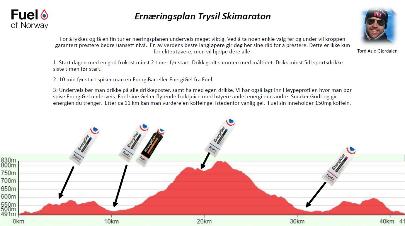 For å oppnå en best mulig prestasjon i Trysil Skimaraton er det viktig med god og riktig ernæring før og underveis i rennet. Sjekk ernæringsplanen som vår nye samarbeidspartner Fuel of Norway har utarbeidet for Trysil Skimaraton.